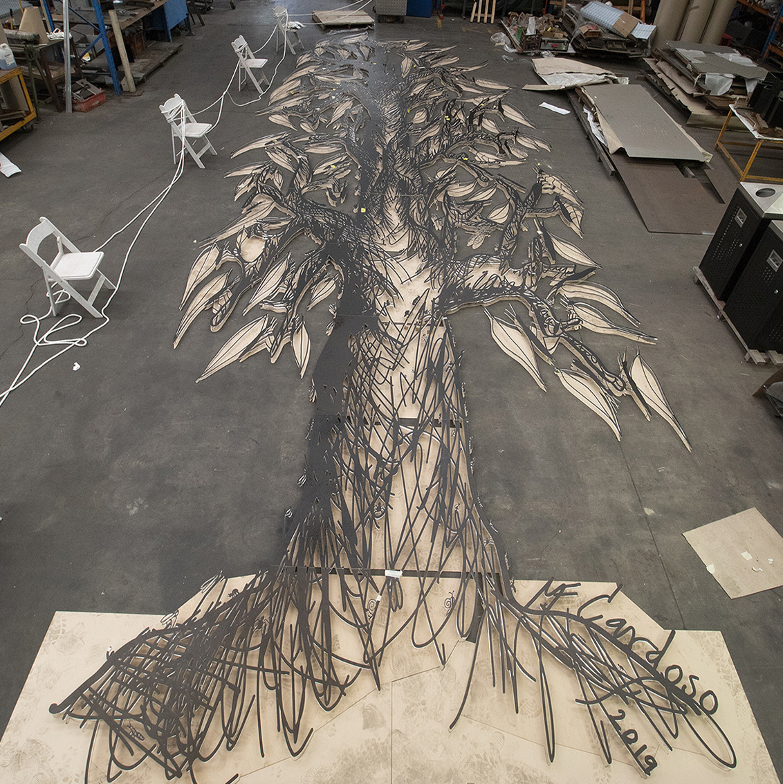 I wanted to connect those two powerful symbols with the Tree of Life in Biology. First proposed by Charles Darwin as a metaphor which expresses the idea that all life is related. Instead of showing only one grand tree - a single living organism, the work shows many other species that inhabit a tree. These are normally not perceived as they like to be camouflaged: insects. The Tree Full of Life is a celebration of life, a multi-species tree with leaves made up of all sorts of insects that mimic plant life. If you look carefully you will see the butterflies, grasshoppers, crickets, ants, etc.