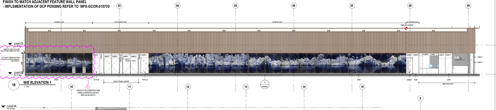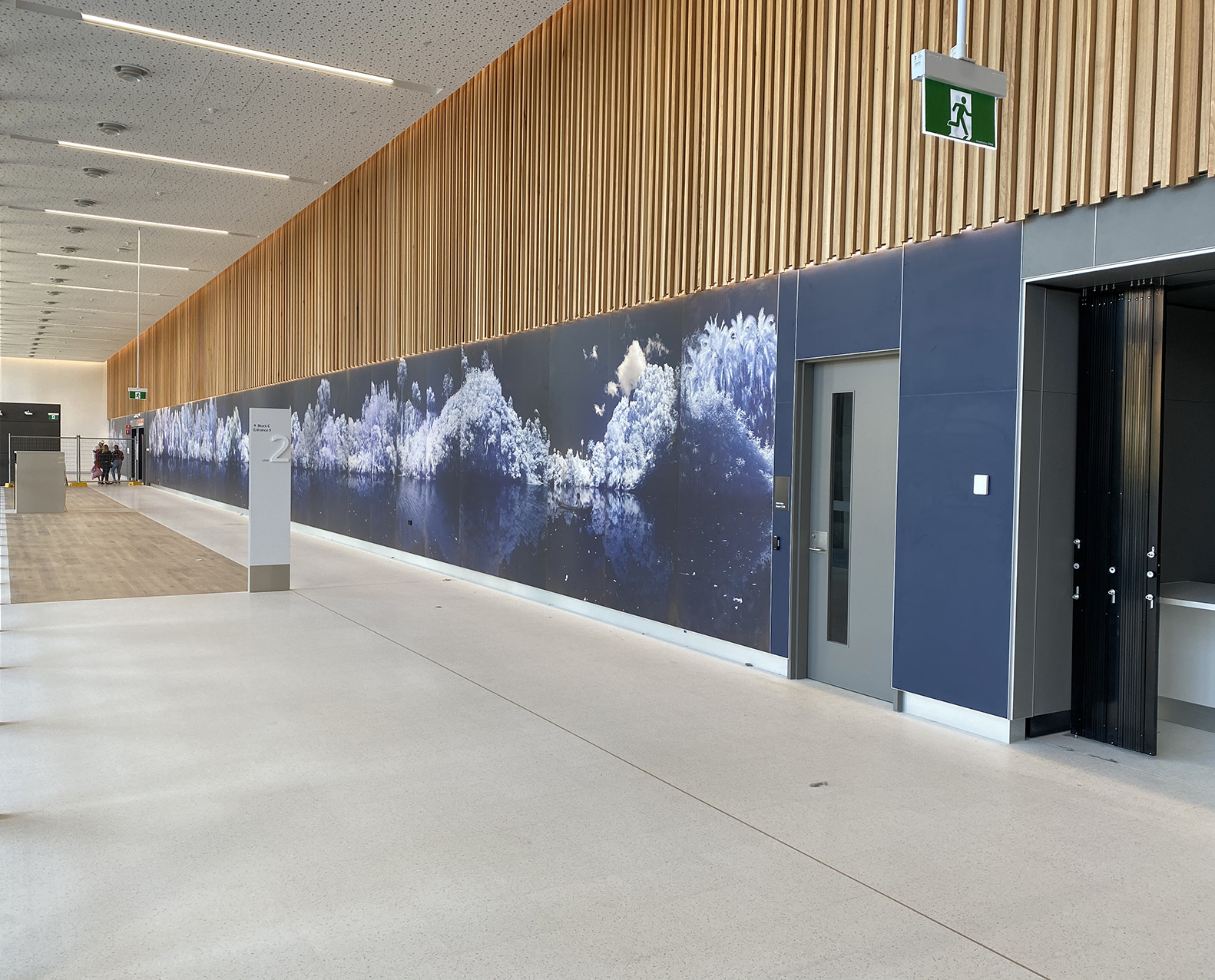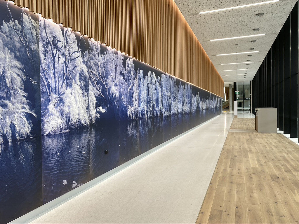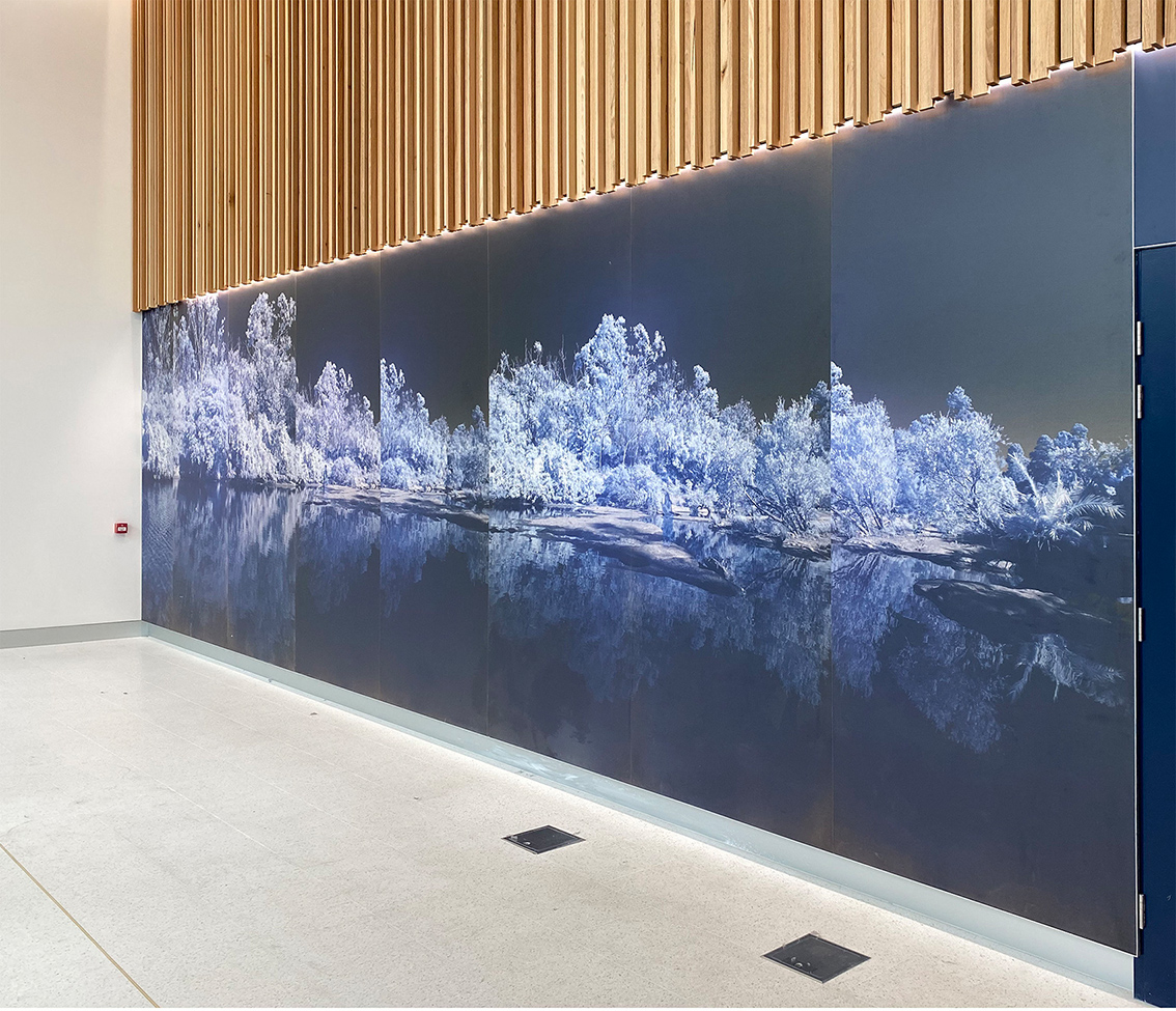 Work by Danie Mellor Infrared photography Parramatta River, manipulated images fabricated in Laminex Fusion Location Main Entry