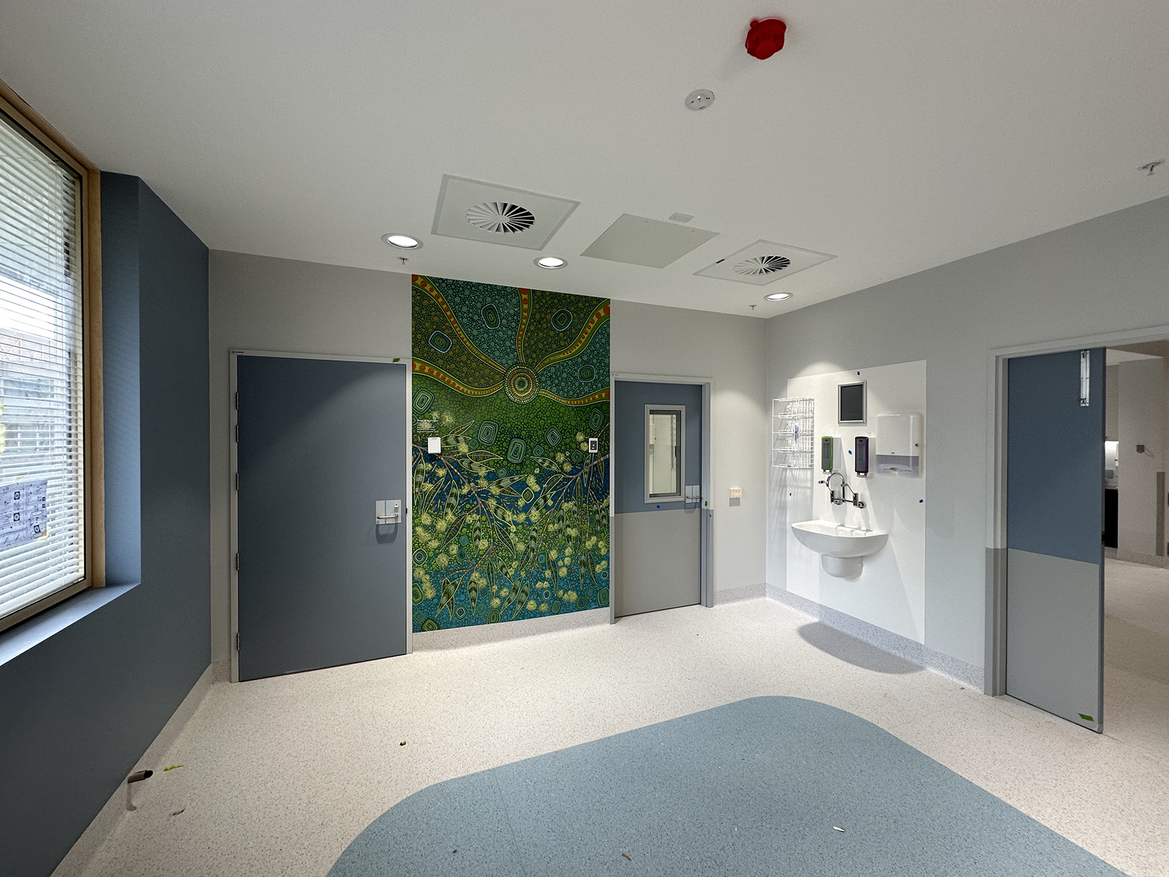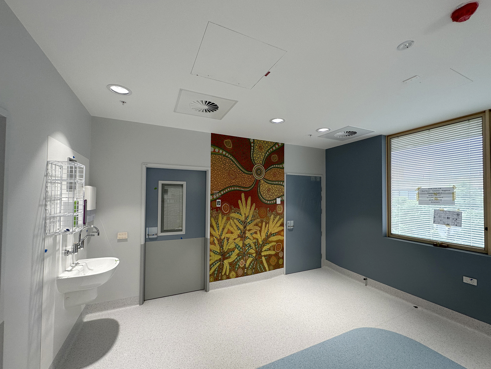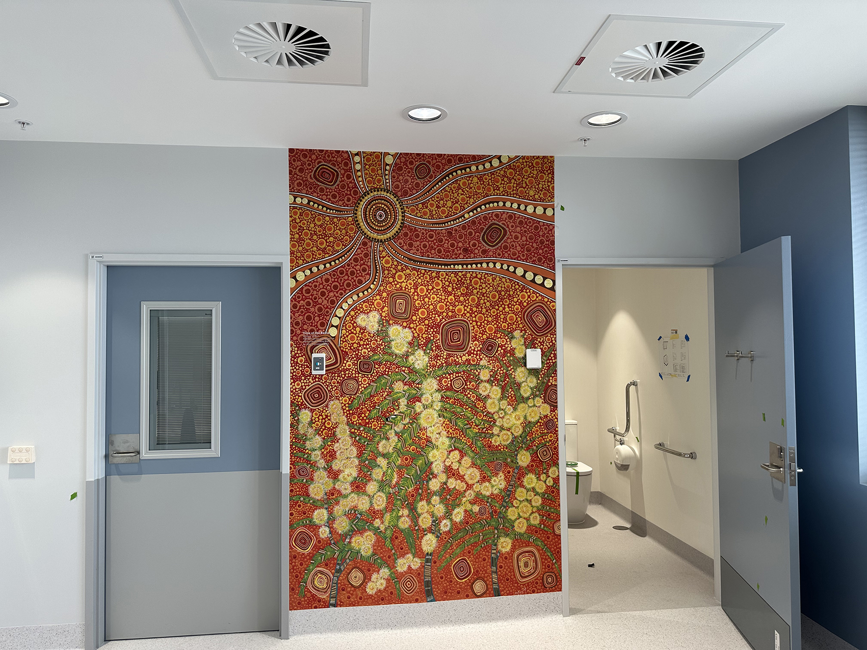 Art works for the Cystic Fibrosis Unit inboard Bedrooms and Isolation Bedrooms. The original art works developed by Owen Thompson and Jamie Eastwood in coloration with the staff and users of the CFSS Unit. Themes are "Connections:Aboriginal Seasons" by Jamie Eastwood and "Places we Love" by Owen Thompson.