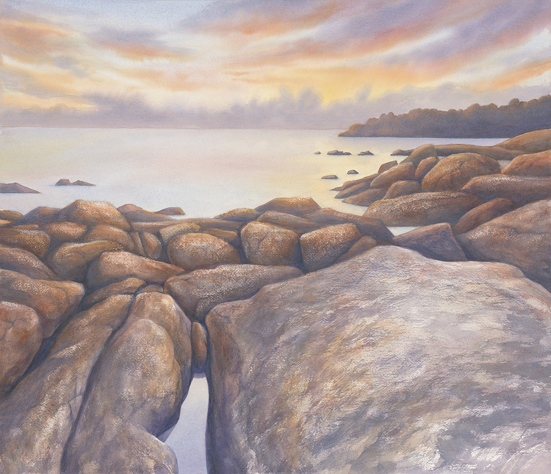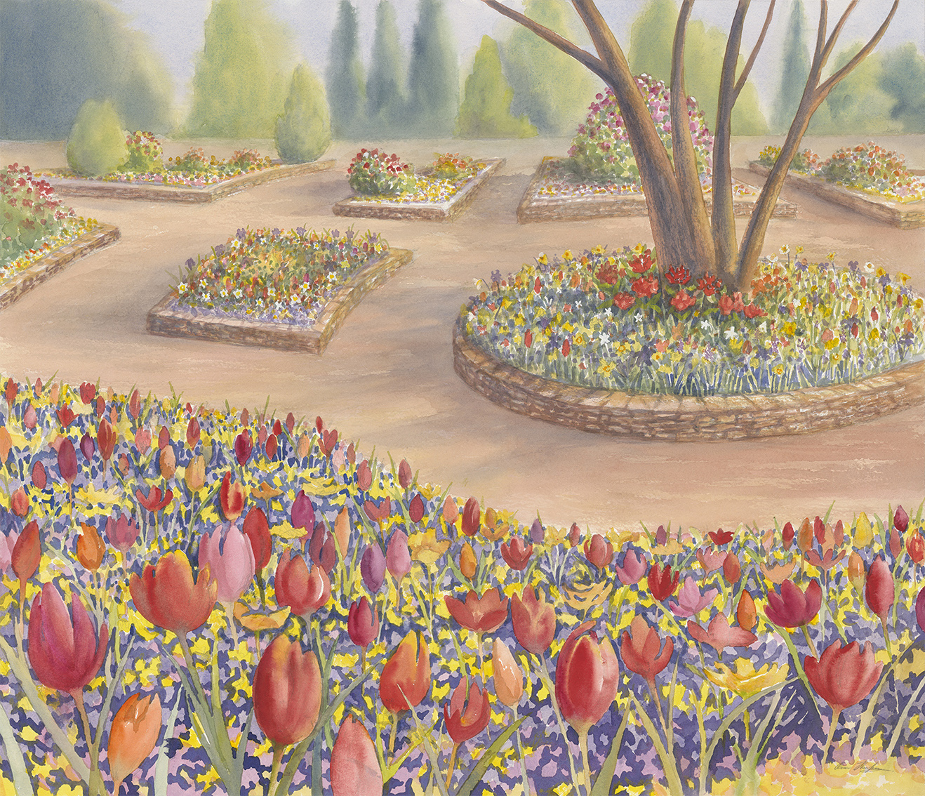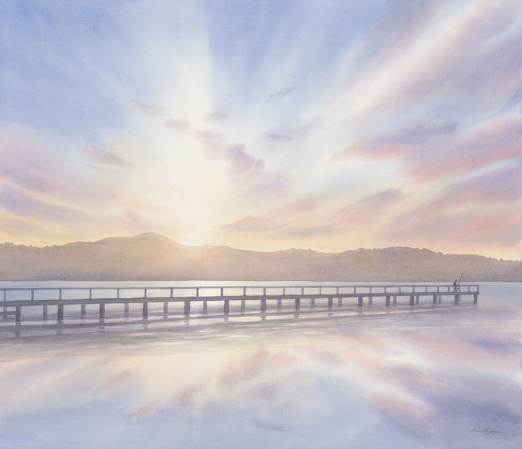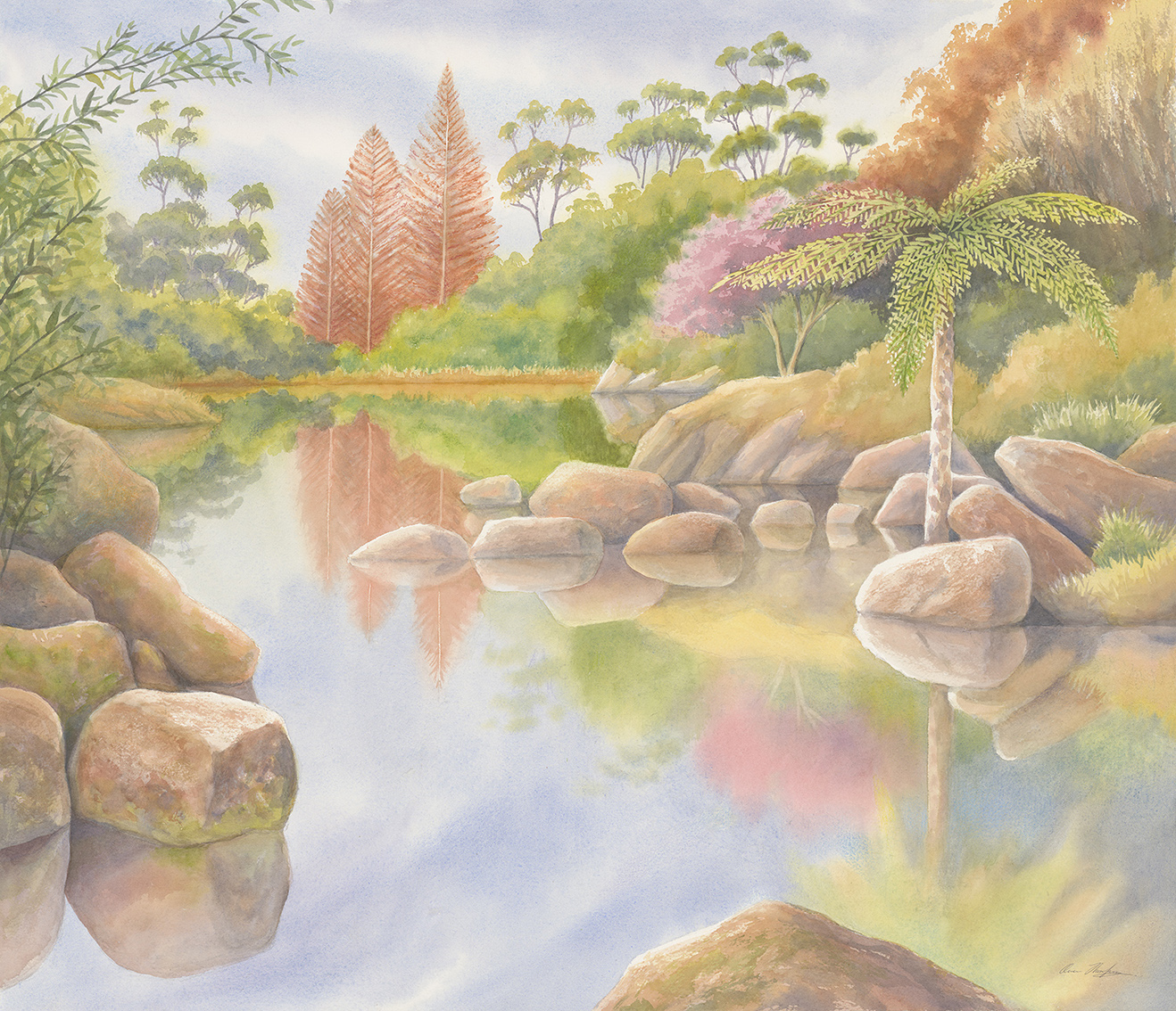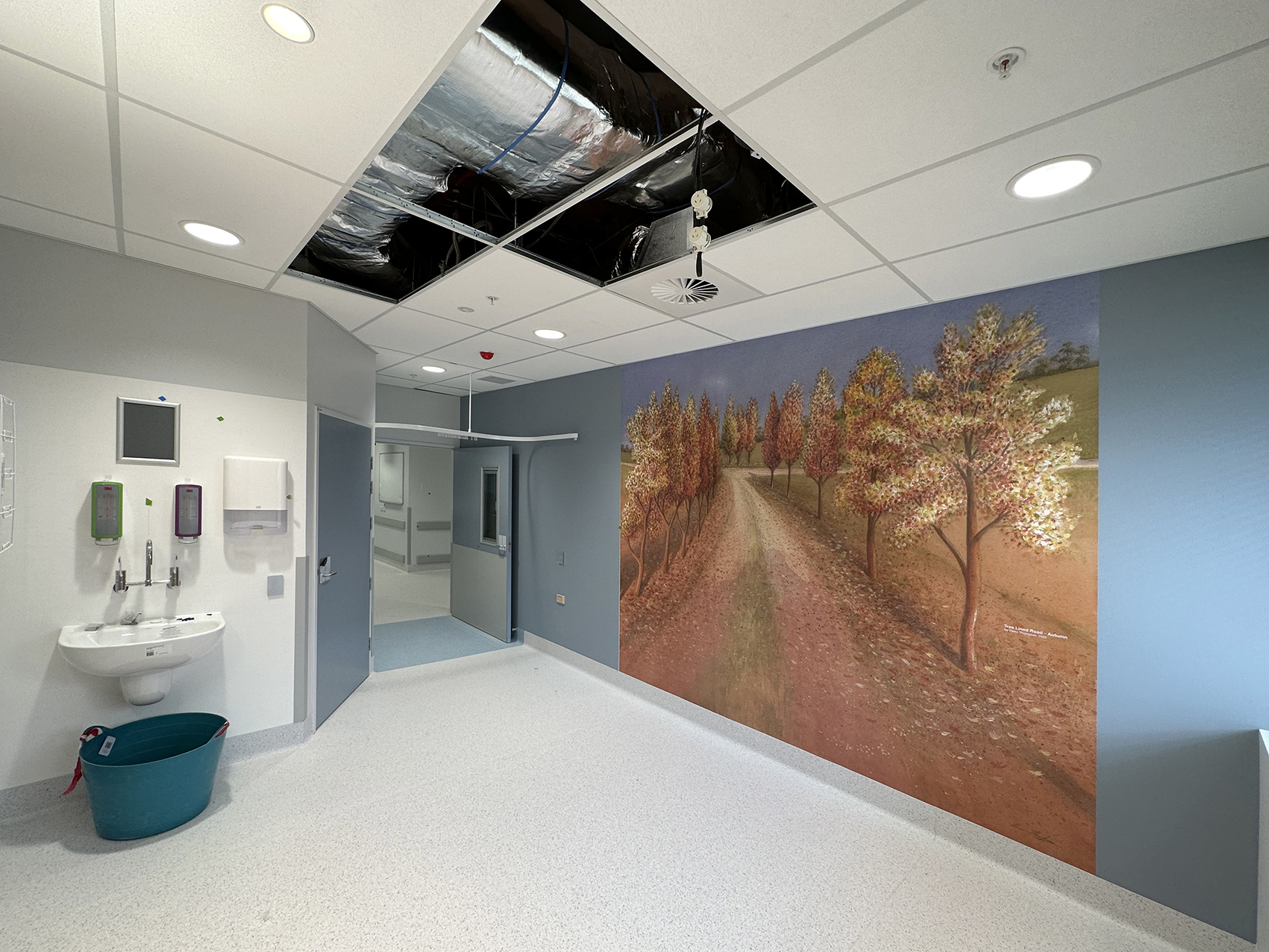 Fourteen originals watercolours, size 54cm x 65cm, were enlarged to 3 m wide by 2.55m height and printed in vinyl, creating a natural scene for 29 patient rooms of Level 5 Cystic Fibrosis and Respiratory IPUs.